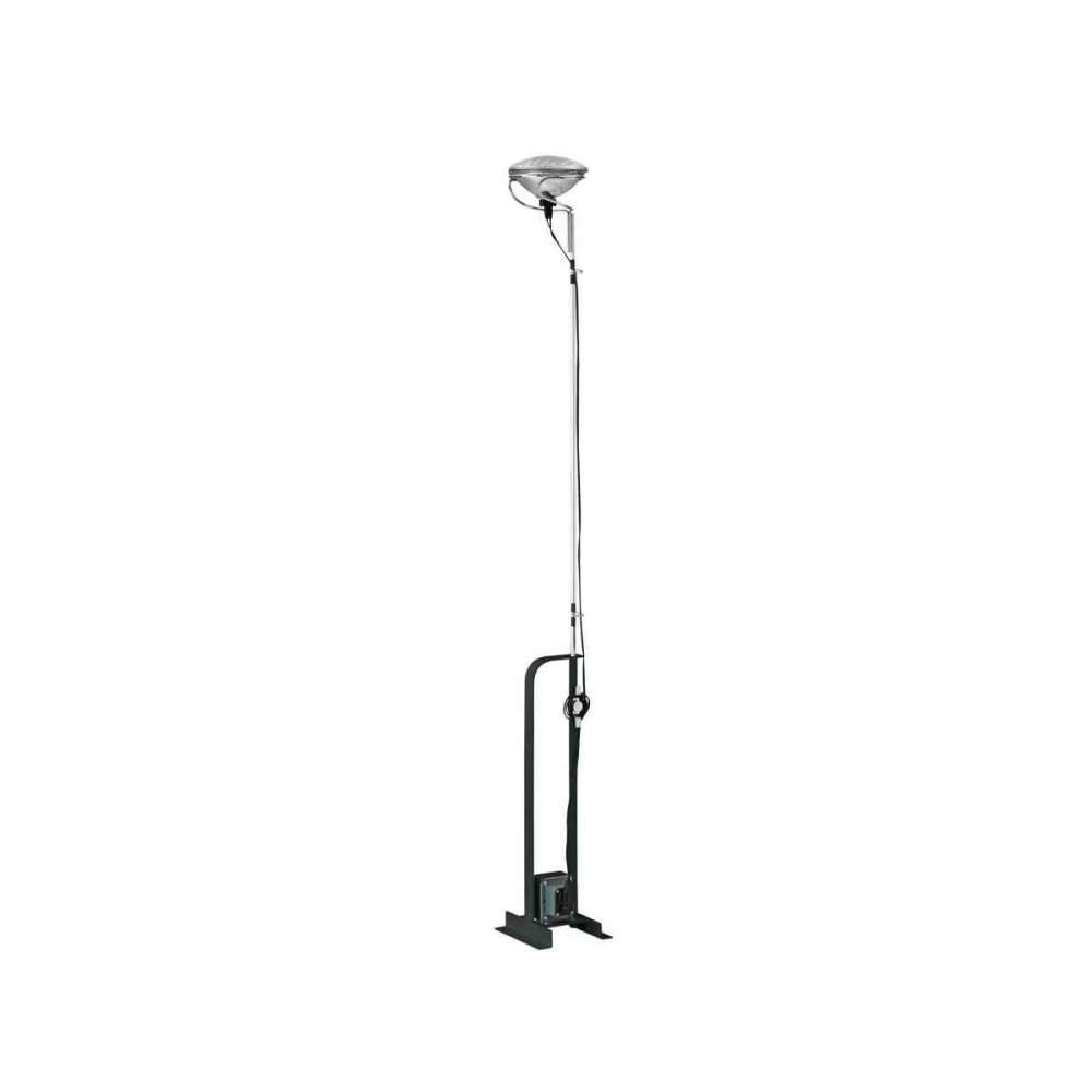 Lampa podłogowa zapewniająca oświetlenie pośrednie. Kątownik i podstawa ze stali formowanej, pomalowana na różne kolory. Sześciokątny niklowany mosiężny trzonek z regulacją wysokości i głowicą teleskopową. Na przewodzie znajduje się elektroniczny ściemniacz, który umożliwia regulację jasności światła.