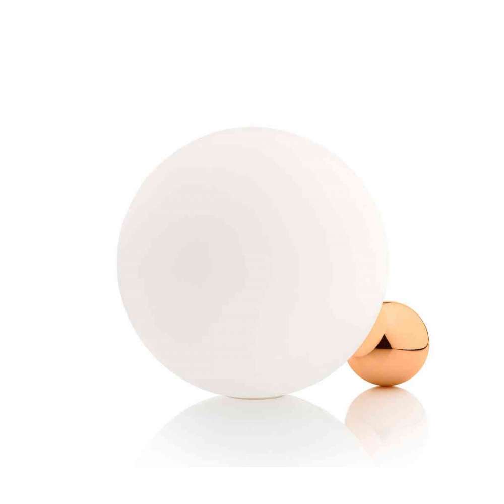 Oprawa oświetleniowa stołu składająca się z aluminiowej kuli wykonanej z litego materiału, a następnie pokrytej 24-karatowym złotem. Klosz z dmuchanego szkła opalowego. Źródło światła LED ze ściemniaczem na kablu zasilającym.