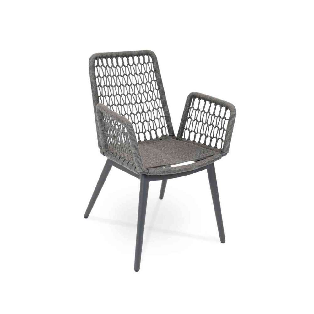 Fotel Wing Light wykonany jest z eleganckiej, ręcznie plecionej liny fm. Nie tylko oparcie, ale i siedzisko są wysokiej jakości plecione i nadają fotelowi domowego charakteru. Sznurki tekstylne są całkowicie odporne na warunki atmosferyczne. Rama oferowana jest w kolorze teak lub aluminium białym lub antracytowym.