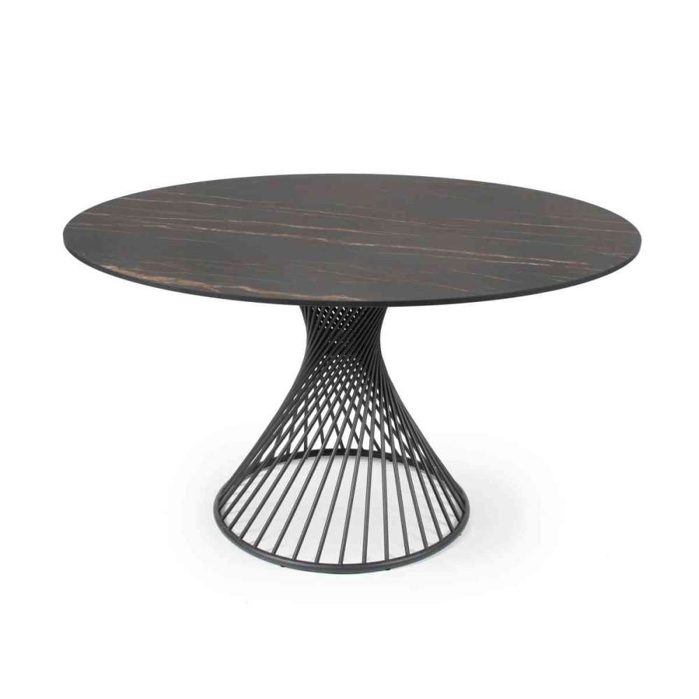 Stół na cokole Claris z okrągłymi blatami to ikona jako stół. Wyraźna deklaracja nowego wzornictwa na zewnątrz. Długotrwała odporność na warunki atmosferyczne arcydzieł wykonanych wyłącznie ze stali szlachetnej jest oczywista. Nowy i elegancki jest również ciemnobrązowy kolor dostępny obok klasycznego antracytu. Oferowane blaty wykonane są z odpornej na warunki atmosferyczne ceramiki porcelanowej o grubości 12 mm z luksusowymi dekorami.