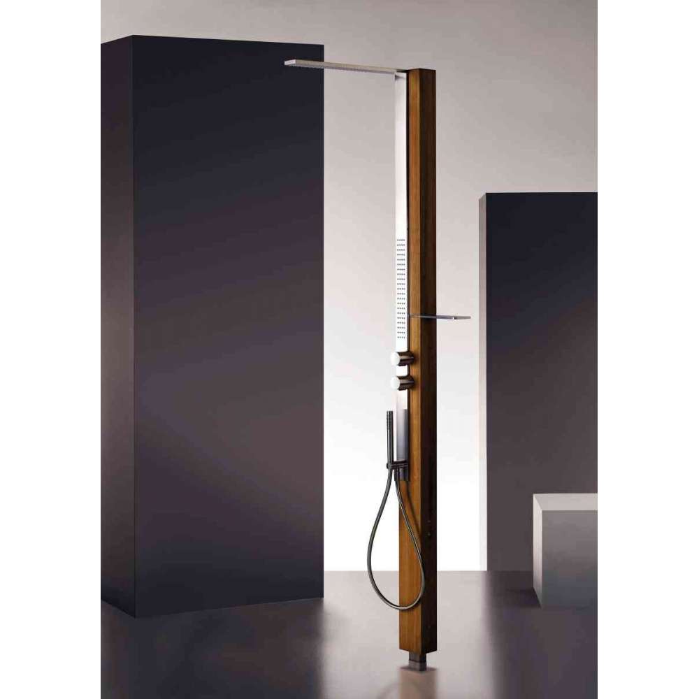 Kolumna prysznicowa do użytku na zewnątrz, wykonana ze stali i drewna