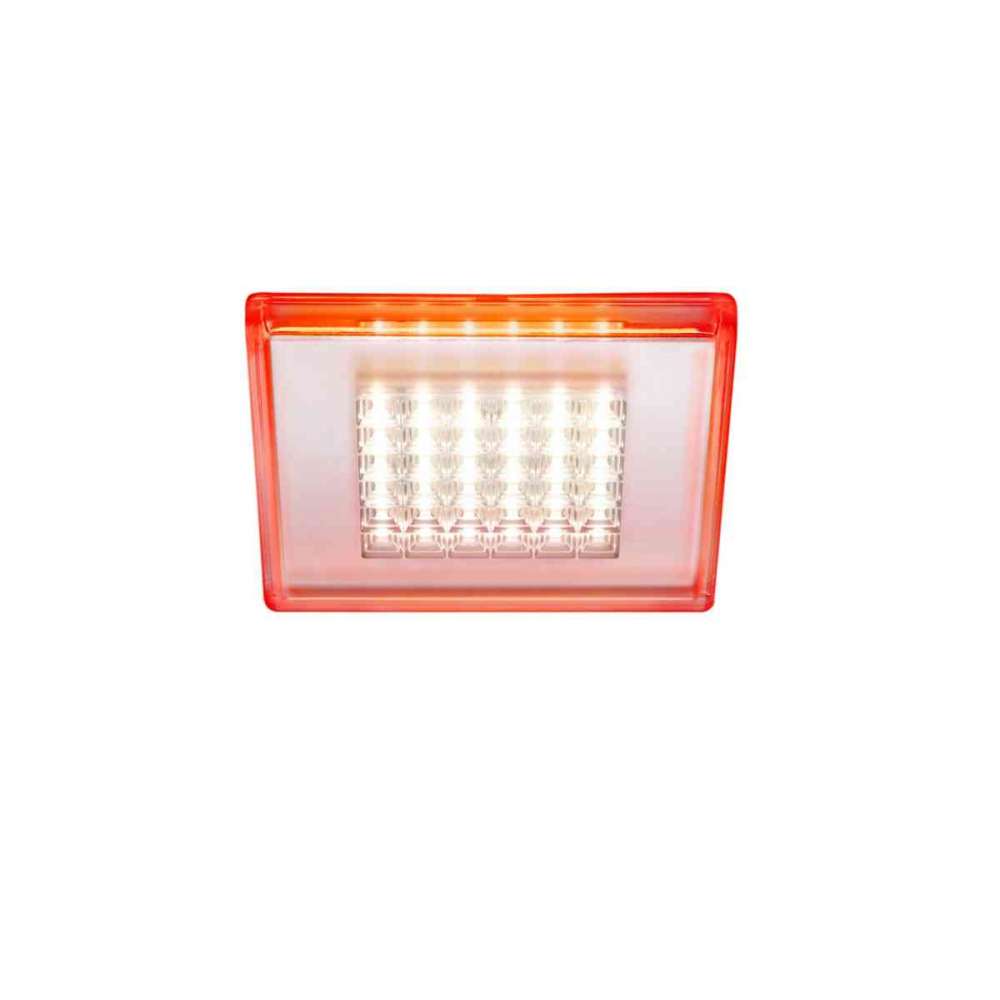 Ta lampa Marc Sadler jest doskonale wykończona i wyprodukowana i raz na zawsze eliminuje wszelkie uprzedzenia dotyczące domniemanego chłodu świateł LED. Fasetowany przezroczysty moduł łączy upodobanie do szkła Murano z najnowszymi technikami obróbki polimerów. Ta lampa została zaprojektowana z myślą o łatwej instalacji, niezależnie od tego, czy jest wpuszczana, czy montowana na ścianie/suficie. Zapewnia również najwyższą energooszczędność dzięki 36 diodom LED o doskonałej skuteczności świetlnej i zużyciu zaledwie 15 W. Wszelkie kolorowe akcenty wokół krawędzi nie zmieniają intensywności i jakości światła, które pozostaje ciepłe i otaczające. Dyfuzor z poliwęglanu dostępny jest w czterech wersjach kolorystycznych: przezroczysty, z bursztynowymi profilami, czerwony lub niebieski.