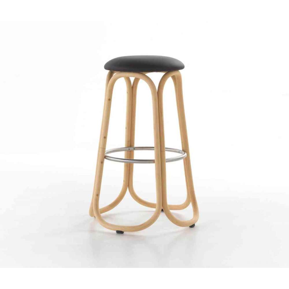 „Jego struktura wyłania się z gry stycznych linii między czterema organicznymi ramami i tymi z siedziskiem, zapewniając w ten sposób stabilność, a jednocześnie czyniąc ją prawie przezroczystą. Ta unowocześniona wersja historycznego taboretu z lat 60. czyni go niezbędnym elementem i podkreśla wieczną aktualność określonej metody projektowania, odbiegającej od trendów mody i konwencji określonej epoki”. barwiony naturalny rattan o średnicy 26 mm. Rama wykonana z łuszczonego i barwionego naturalnego rattanu o średnicy 10 mm. Wykończony trzyetapową powłoką (farba, baza i top) o wysokiej odporności na promieniowanie słoneczne dzięki filtrom UV. Tapicerowane siedzisko wykonane z naturalnej lub sztucznej skóry, dziewiczych tkanin wełnianych, aksamitu i polipropylenu. Podnóżek ze stali nierdzewnej. Nakładki ochronne z wyjmowanymi wkładkami z filcu z tworzywa sztucznego.