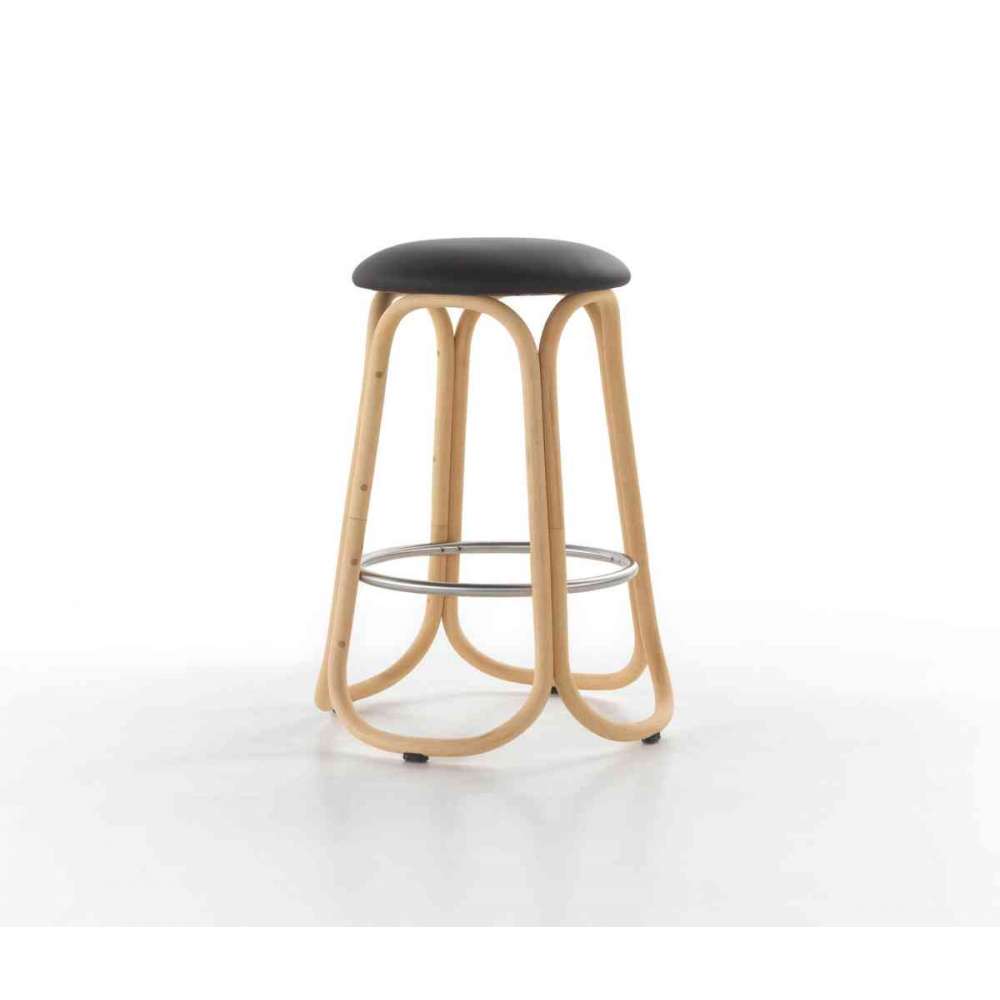 „Jego struktura wyłania się z gry stycznych linii między czterema organicznymi ramami i tymi z siedziskiem, zapewniając w ten sposób stabilność, a jednocześnie czyniąc ją prawie przezroczystą. Ta unowocześniona wersja historycznego taboretu z lat 60. czyni go niezbędnym elementem i podkreśla wieczną aktualność określonej metody projektowania, odbiegającej od trendów mody i konwencji określonej epoki”. barwiony naturalny rattan o średnicy 26 mm. Rama wykonana z łuszczonego i barwionego naturalnego rattanu o średnicy 10 mm. Wykończony trzyetapową powłoką (farba, baza i top) o wysokiej odporności na promieniowanie słoneczne dzięki filtrom UV. Tapicerowane siedzisko wykonane z naturalnej lub sztucznej skóry, dziewiczych tkanin wełnianych, aksamitu i polipropylenu. Podnóżek ze stali nierdzewnej. Nakładki ochronne z wyjmowanymi wkładkami z filcu z tworzywa sztucznego.