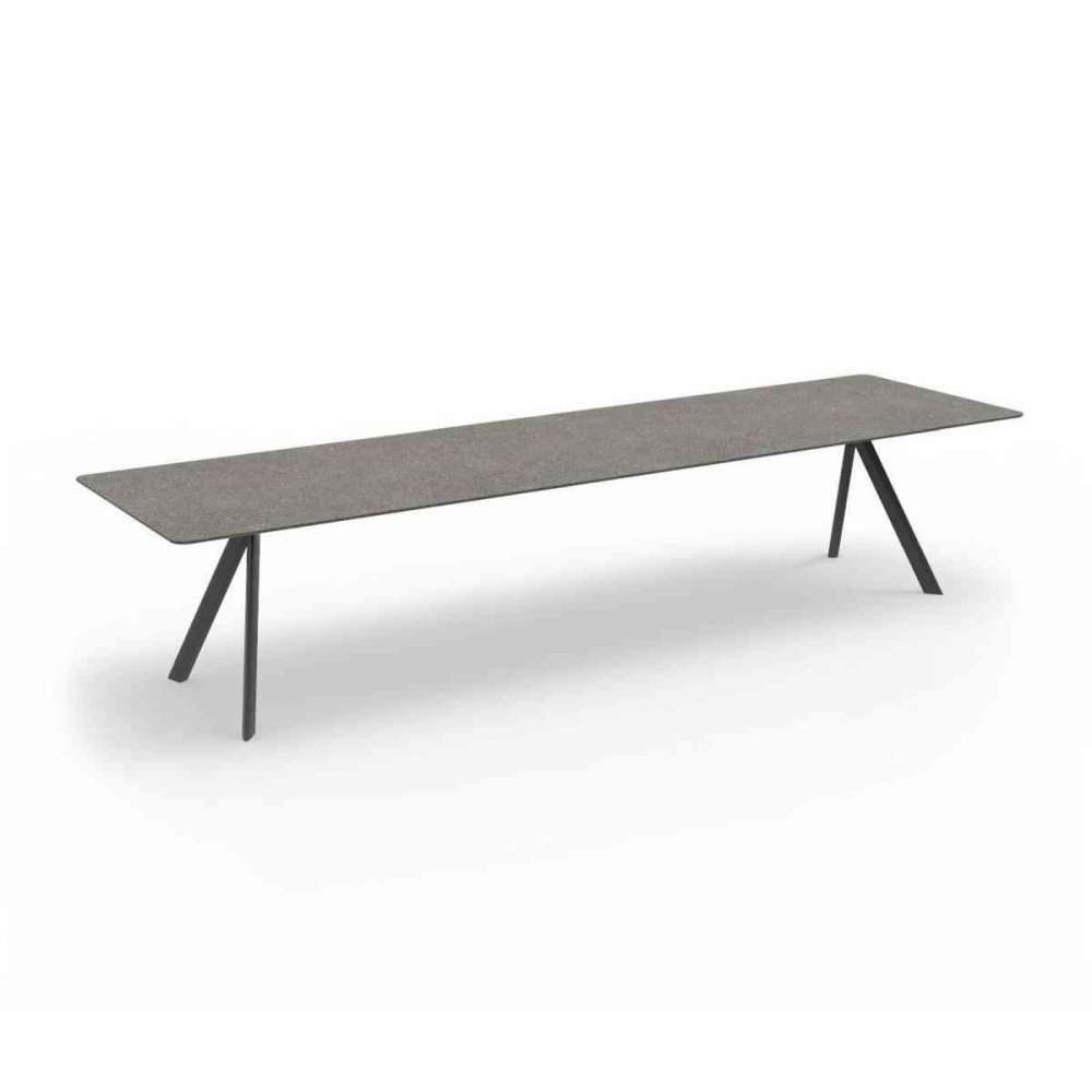 Kolekcja o konstrukcji wykonanej z wysokiej wytrzymały profil aluminiowy i nogi z ekstruzji aluminiowej, wykończone proszkiem poliestrowym. Opcje blatów: HPL Trespa® o grubości 13 mm/0,51” i Dekton® o grubości 8 mm/0,31”.