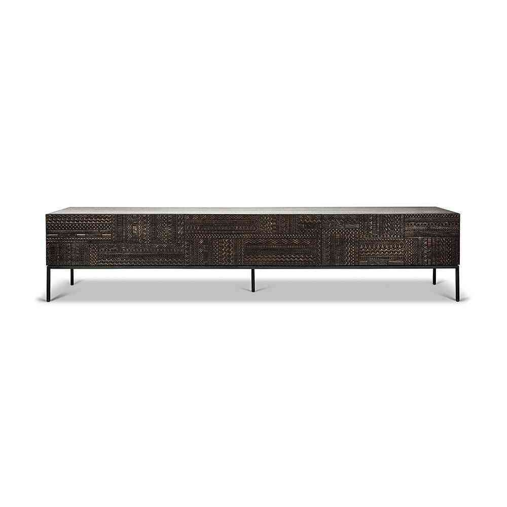 Zobacz większe Ethnicraft Tabwa | Teak black TV cupboard - 1 flip-down door - 2 drawers - varnished