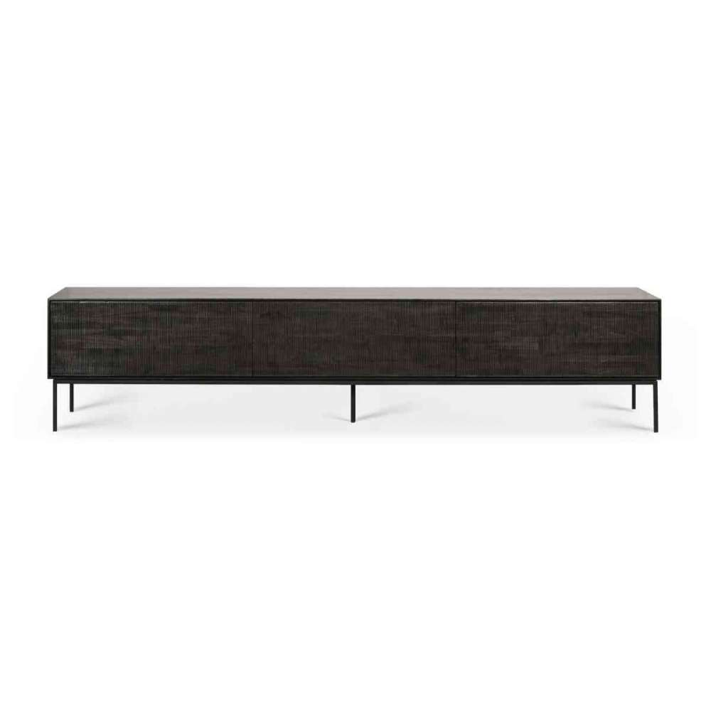 Zobacz większe Ethnicraft Grooves | Teak black TV cupboard - 1 flip-down door - 2 drawers - varnished