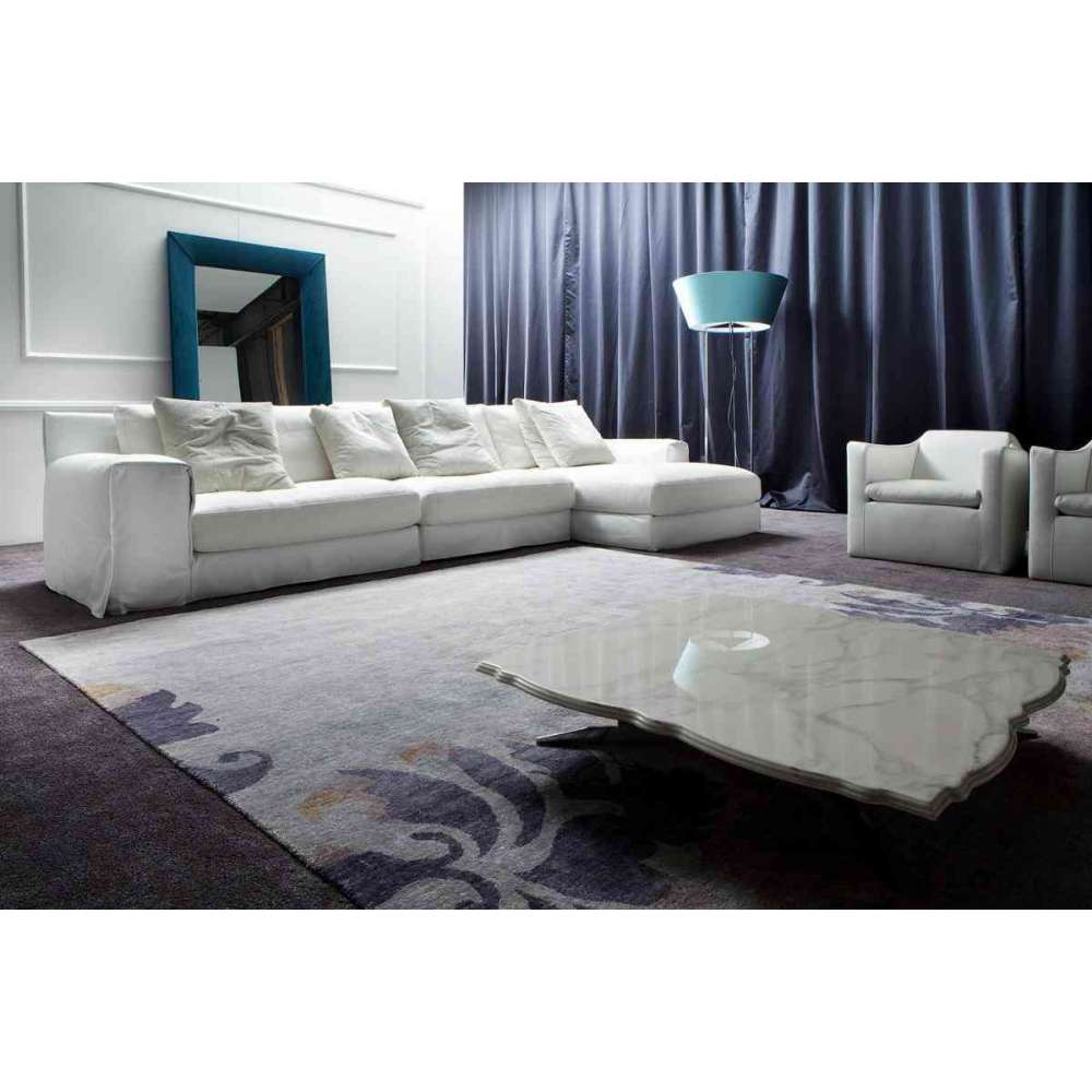 Miękka sofa o słodkich i opadających liniach. Tapicerka do samej podłogi, charakteryzująca się zakładką na podłokietniku jak w sukience. Dostępne w skórze lub tkaninie. Stalowa konstrukcja pokryta nieodkształcalną i hipoalergiczną pianką poliuretanową. Wyściółka siedziska z gęsiego puchu z nieodkształcalną i hipoalergiczną wkładką z pianki poliuretanowej. Poduszki oparcia z dziewiczego puchu gęsiego. Wykonany jest zarówno z tkaniny, jak i skóry.