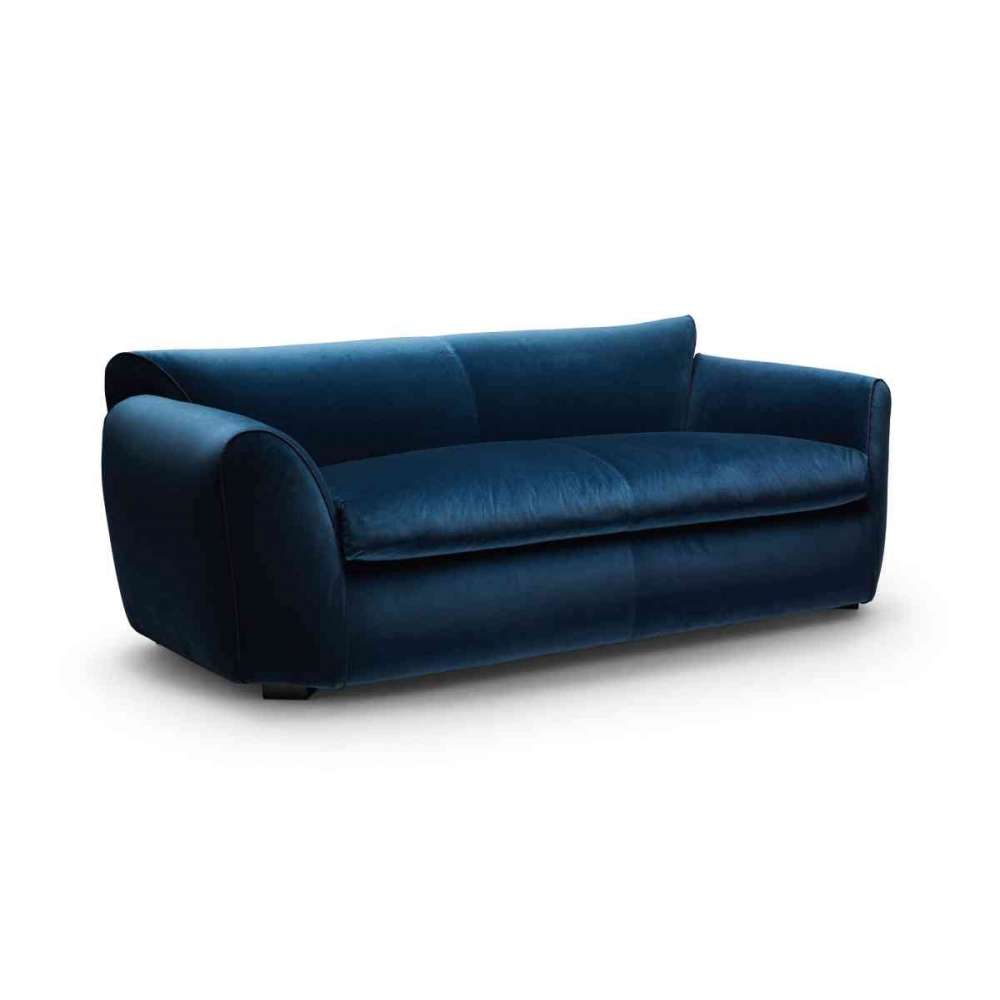 Bogate, pluszowe, okrągłe objętości i soczysty komfort w małej sofie. Końce podłokietników i oparcia są ustawione pod kątem 45 stopni: ta wizualna sztuczka znacznie zwiększa postrzeganą szerokość elementów i postrzegany rozmiar sofy. Ponadto, chociaż SB nie jest elementem przekrojowym, kąt pomaga ustawić dwa pasujące elementy w typowej kompozycji w kształcie litery L. Używamy absolutnie minimalnej ilości poliuretanu i tylko w kilku krytycznych punktach: komfort SB uzyskuje się dzięki elastycznym paskom, dacronowi i naturalnemu puchowi.