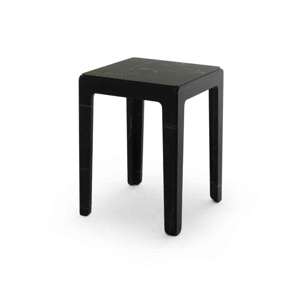 Stolik boczny na 4 nogach w całości wykonany z kamienia. Dzięki prostej sztuczce stolik boczny, który w rzeczywistości składa się z pięciu części, wydaje się być wyrzeźbiony z litego bloku. Cztery boczne elementy, po złożeniu z blatem, stają się strukturalne bez potrzeby stosowania dodatkowych części, które z kolei mogłyby zagrozić efektowi rzeźbiarskiemu elementu. Powierzchnia jest wykończona lekkim, trójwymiarowym, wyblakłym wykończeniem, które dodatkowo zwiększa szlachetność naturalnego materiału i z czasem ukrywa potencjalne zadrapania i plamy. Dostępny w dwóch rozmiarach.
