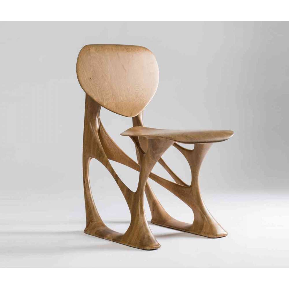 Organiczna konstrukcja tego krzesła sprawia, że żyły drewna wibrują. Mocne wrażenie życia i natury pod palcami. Miękki i ciepły dotyk jednocześnie. To krzesło nie pozostawia nikogo obojętnym. Natura i ręka człowieka w symbiozie. Manifest tak cennego i niepowtarzalnego know-how.