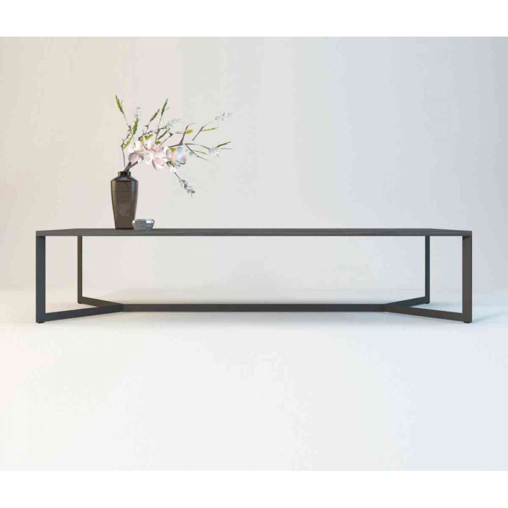 Christophe Pillet zaprojektował stół o imponujących wymiarach, który będzie doskonale prezentował się w domu w industrialnym loftowym mieszkaniu lub ultranowoczesnym wnętrzu architektonicznym. Struktura tego stołu ze szczotkowanego brązu nadaje ton meblowi: styl jest ostry, kanciasty i czysty, aby jak najlepiej zaprezentować wielkoformatowy wyjątkowy blat z litego drewna. Skupiono się tutaj na zanikających liniach, które przecinają się, ukazując istotę projektu.