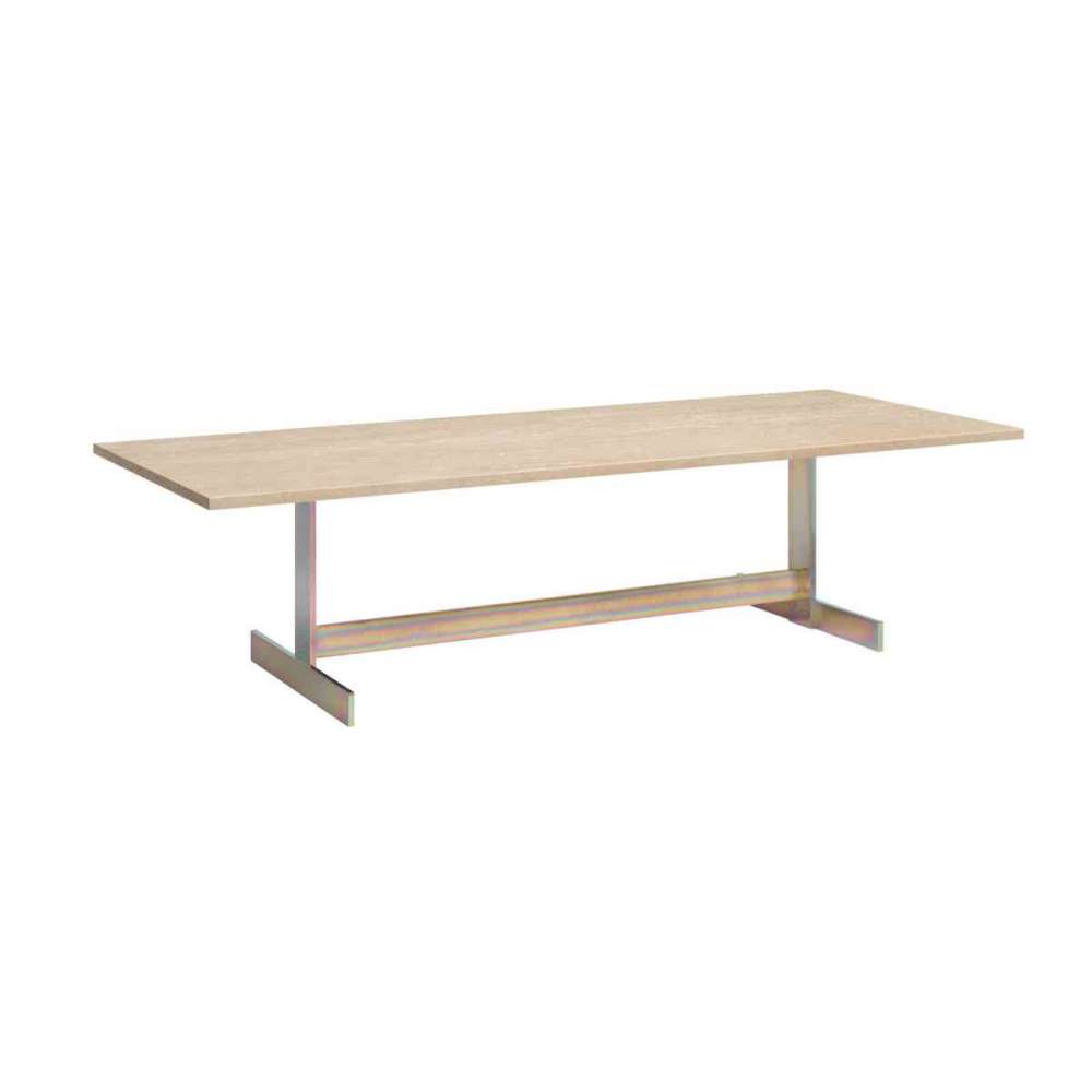 Stół z blatem i podstawą z trawertynu z aluminium ocynkowanego na żółto