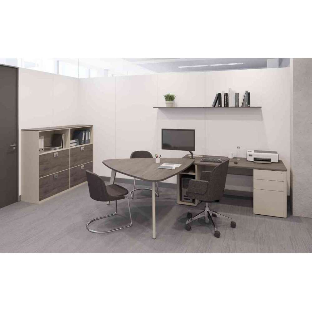Ze skośnymi nogami jako znakiem rozpoznawczym i harmonijnymi wykończeniami, przyjazne kształty tego biurka ze stołem są zgodne z estetyką obecnego rynku.