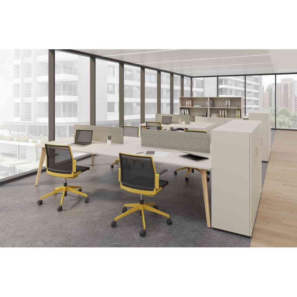 Opcja drewnianych lub metalowych, okrągłych lub prostokątnych nóg otwiera szereg możliwości wizualnego rozróżnienia stanowisk operatorskich, miejsc spotkań i stanowisk kierowniczych bez utraty spójności pod względem ogólnego wyglądu.