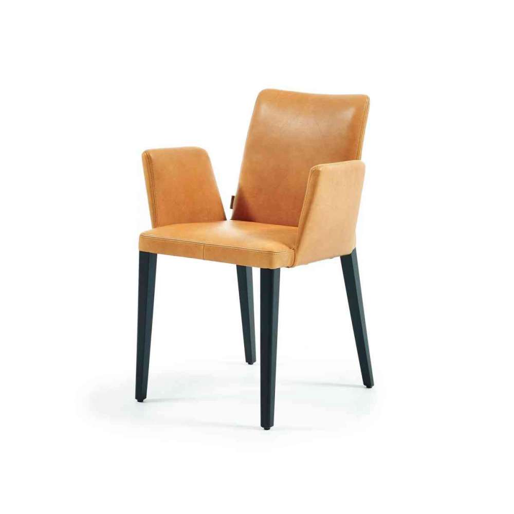 Siła tego projektu tkwi w jego prostocie. Jednak proste projekty są często najtrudniejsze. Proporcje i wymiary muszą do siebie idealnie pasować, podobnie jak wygoda. Sekretem komfortu siedzenia tego krzesła jest oparcie, którego kształt zapewnia doskonałe podparcie. Ponadto oparcie wyposażone jest w specjalnie zaprojektowany system sprężyn. Nigdy nie poczujesz się tak, jakbyś siedział na twardym kawałku drewna, nawet po kilku godzinach użytkowania. Drobne, dekoracyjne podwójne szwy delikatnie podkreślają kształt i wykończenie krzesła. Nogi z litego dębu mogą być bejcowane na różne kolory lub mogą być tapicerowane tą samą tkaniną lub skórą, co pozostałe części krzesła. Max występuje jako krzesło z podłokietnikami jak i bez. Tylko poprzez wybór koloru i materiału tapicerki oraz nóg można całkowicie zmienić wygląd Maxa.