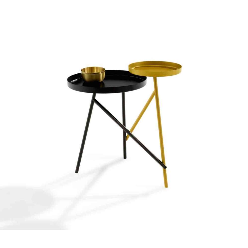 OPIS TANGO to taniec ramię w ramię – nowy stolik przypominający dwójkę tancerzy. Z jednej strony dwa elementy stołu są połączone poprzeczkami, az drugiej strony są oddzielone kolorami. Różne metalowe wykończenia pozwalają na różnorodne kombinacje.