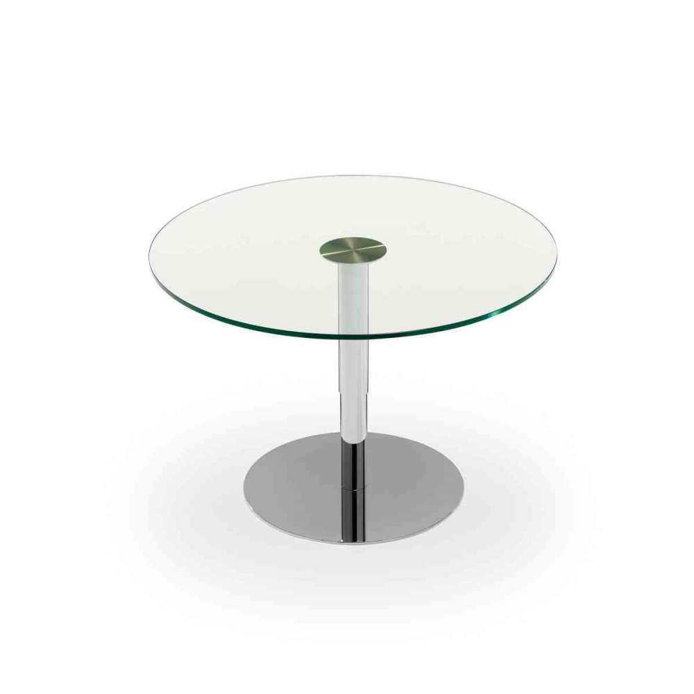 Ten stół można bezstopniowo podnosić od wysokości stolika kawowego do wysokości stołu jadalnego. Dostępne są różne warianty szkła: przezroczyste szkło hartowane, białe szkło lakierowane lub satynowane. Kolumna środkowa jest dostępna w wersji z polerowanego chromu lub matowego chromu.