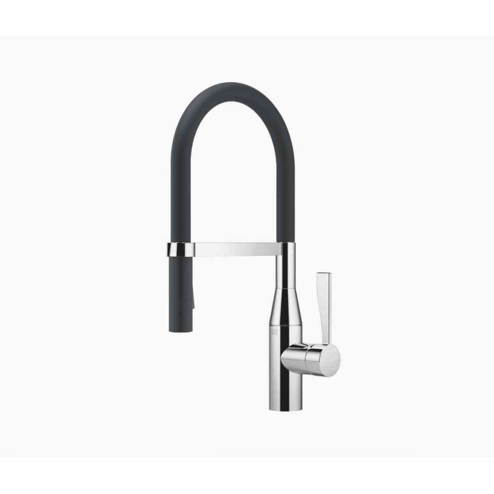 Dynamiczna, skierowana do przodu konstrukcja SYNC dosłownie zbliża się do użytkownika, umożliwiając wygodne użytkowanie produktu. Długa dźwignia i ergonomiczny kąt otwarcia 90° ułatwiają kontrolowanie odpowiedniej ilości wody. SYNC Dornbracht przedstawia okucie opuszczane z funkcją natrysku. Element wysuwny tego typu funkcjonalnego zwiększa promień działania okucia i można go łatwo przenieść w wymagane miejsce użytkowania. SYNC dostarcza dwa rodzaje strumienia w zależności od zastosowania: naturalny strumień laminarny o słabym rozpylaniu i silny strumień płuczący. Możesz wygodnie przełączać się między nimi za naciśnięciem przycisku z tyłu czarnej szuflady.