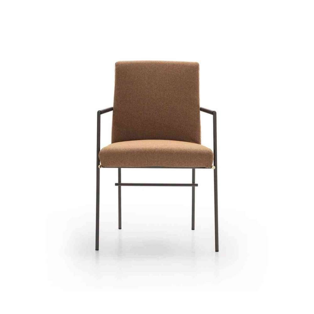 To krzesło inspirowane fotelem o tej samej nazwie. Jego wysokość i rozmiar zostały zaprojektowane tak, aby idealnie pasowały do wyrafinowanych i dyskretnych stołów jadalnych. Opcjonalne, wytrzymałe skórzane podłokietniki podkreślają lekką, łatwo rozpoznawalną metalową konstrukcję.