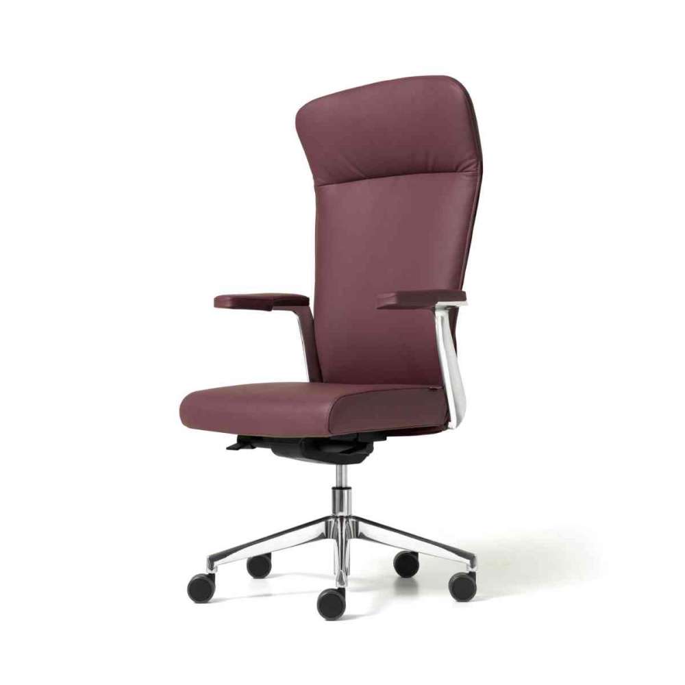 Sedia direzionale, caratterizzata da linee moderne e leggere, versione alta e media. La struttura ei braccioli fissi sono w