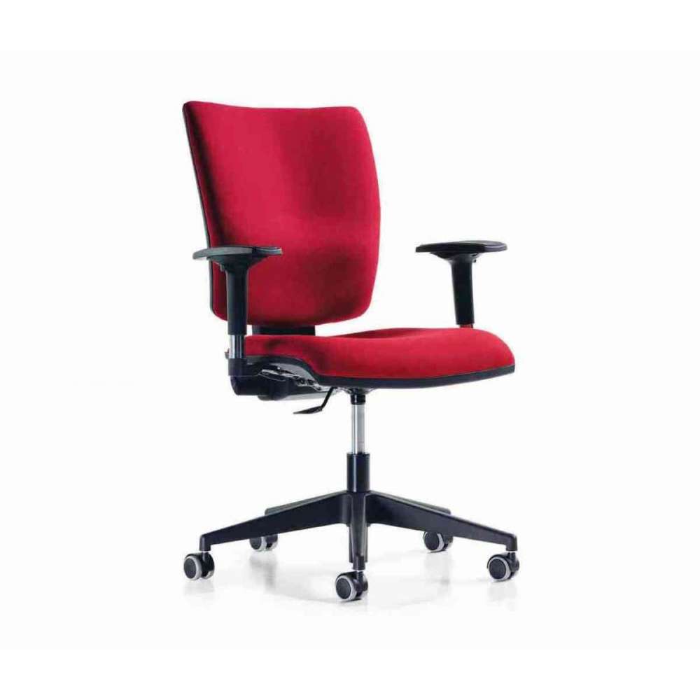 Krzesło biurowe ze standardową czarną nylonową podstawą. Ze stałymi lub regulowanymi ramionami