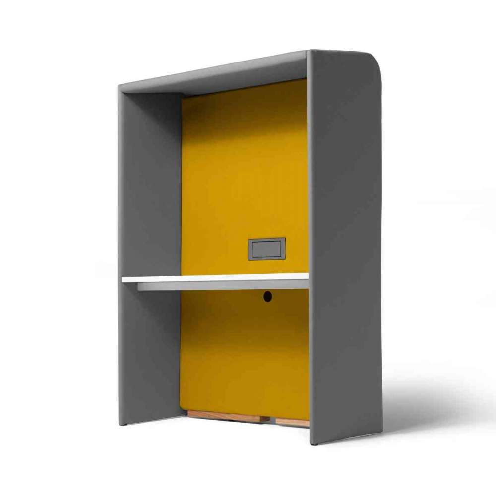 z gniazdami zasilającymi i panelem, do którego można zamontować monitor. Nadaje się jako stacja robocza, a zwłaszcza do rozmów wideo, szanując prywatność użytkownika i innych osób w miejscu pracy, również dzięki swoim właściwościom pochłaniania dźwięku. Idealny do użytku z innymi siedziskami lub z sofą Circuit Privè w celu stworzenia