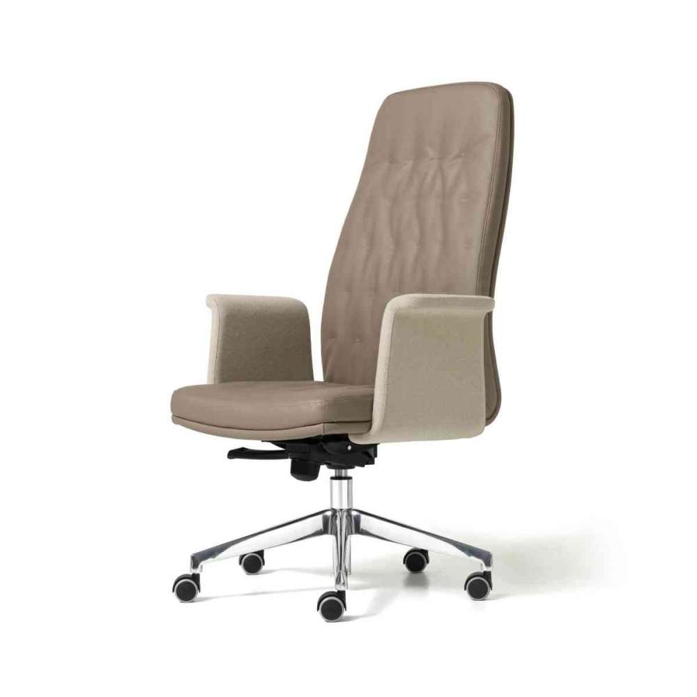 Krzesło biurowe wykonawcze i prezydenckie, skorupa z wielowarstwowego drewna bukowego, wyściełana pianką poliuretanową. Podnośnik gazowy lub mechanizm pochylania kolan. 5-ramienna podstawa z czarnego nylonu lub aluminium na gumowych i samohamownych kółkach. Podłokietniki stałe wyściełane i tapicerowane. Dostępna nawet wersja dla gości z chromowaną ramą wspornikową i stałymi ramionami.