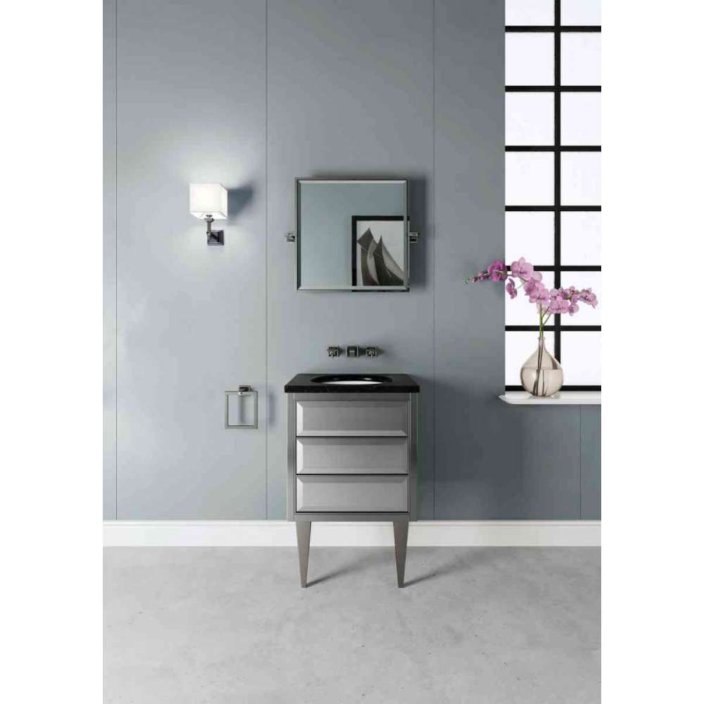 Jest to szafka umywalkowa, która czerpie inspirację z proporcji i kształtów wielkiego amerykańskiego okresu wzornictwa Bauhaus i ożywia je w zaskakująco kompaktowych wymiarach, idealnych do małych, urokliwych wnętrz. Podstawowe linie ramy podstawy, drzwi otwierane przez naciśnięcie, pokryte diamentowym lustrem, podzielone na trzy części i wspierają wyrafinowany granitowy blat. Wszystkie wykończenia można dostosować na życzenie. cm dł.: 57 x wys.: 89,5 x gł.: 49,7