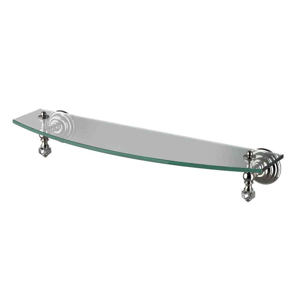 Szklana półka charakteryzująca się wyrafinowanym designem, który przypomina klasyczne motywy sylistyczne we współczesnym stylu i ozdabia podstawowe elementy rurowe z cennymi diamentowymi krawędziami szklanych klejnotów.
