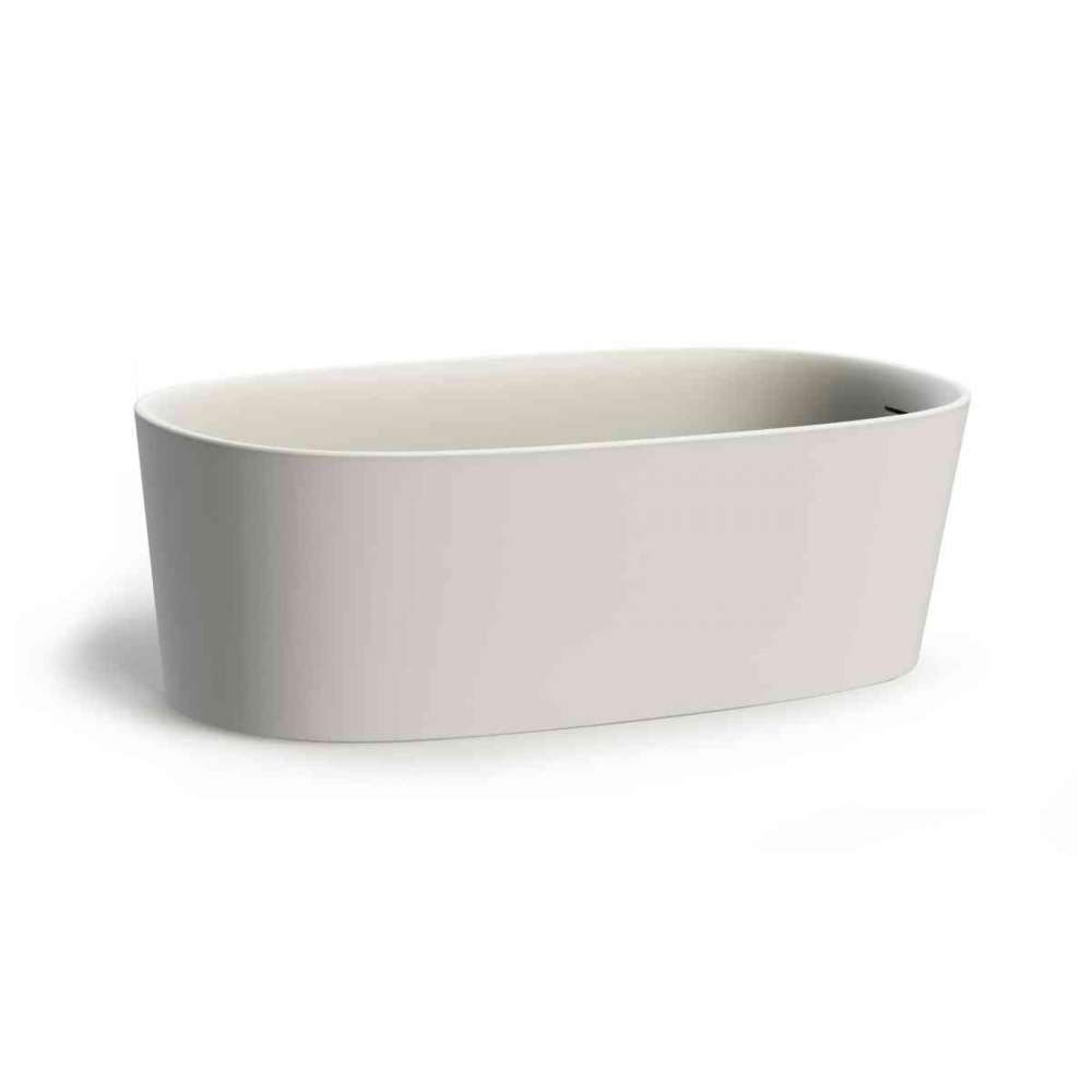 Zaskakująco aksamitna w dotyku obudowa wanny wykonana jest z White Tec Plus, ekologicznego, nadającego się do recyklingu i w 100% odnawialnego materiału z certyfikatem Greenguard Gold.