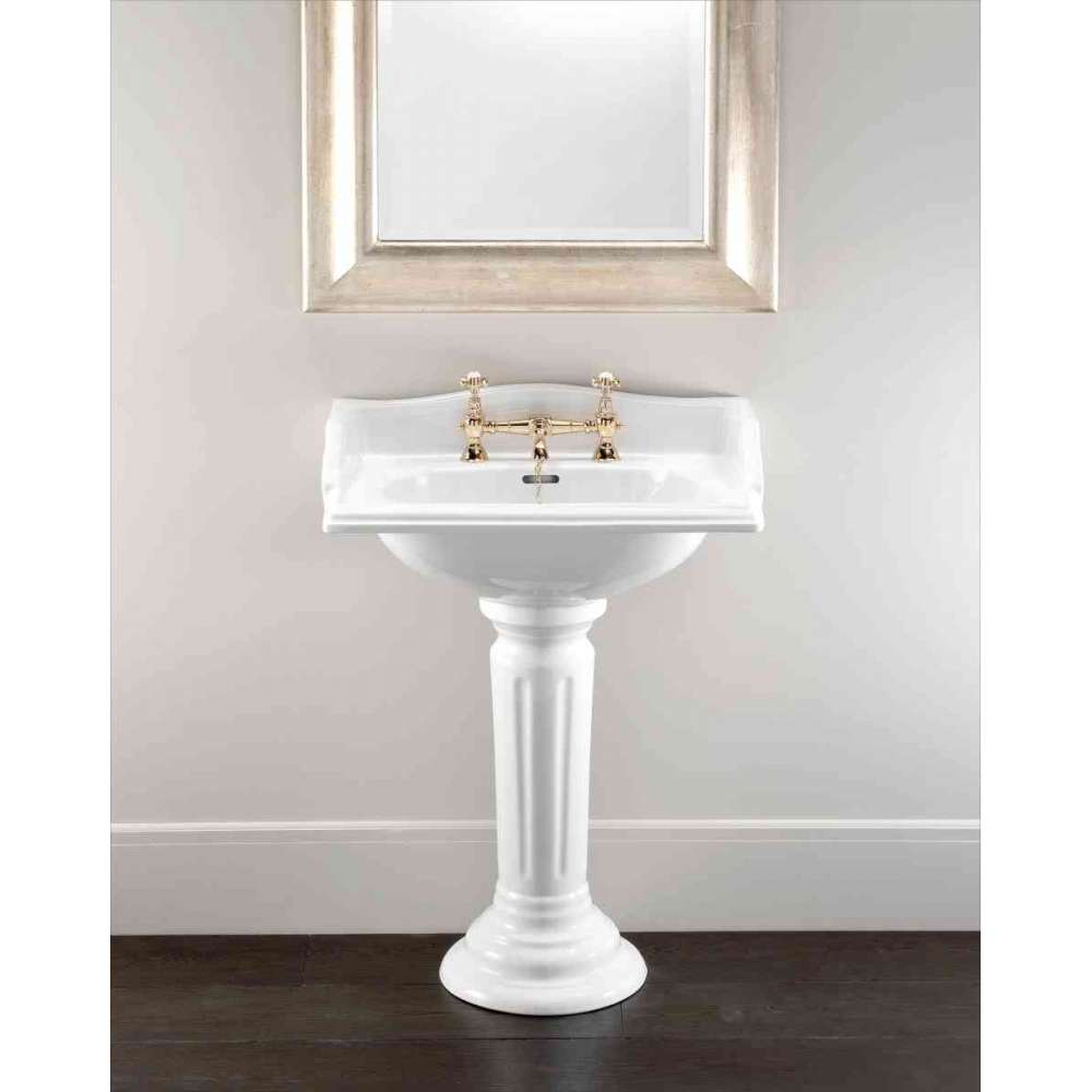 Znakomity klasyczny smak umywalki z delikatnej białej porcelany, z welonem i rzeźbionym postumentem. Jest dostępny w wersjach z 1, 2 lub 3 otworami i może być skoordynowany z patelniami i bidetami Oxford.