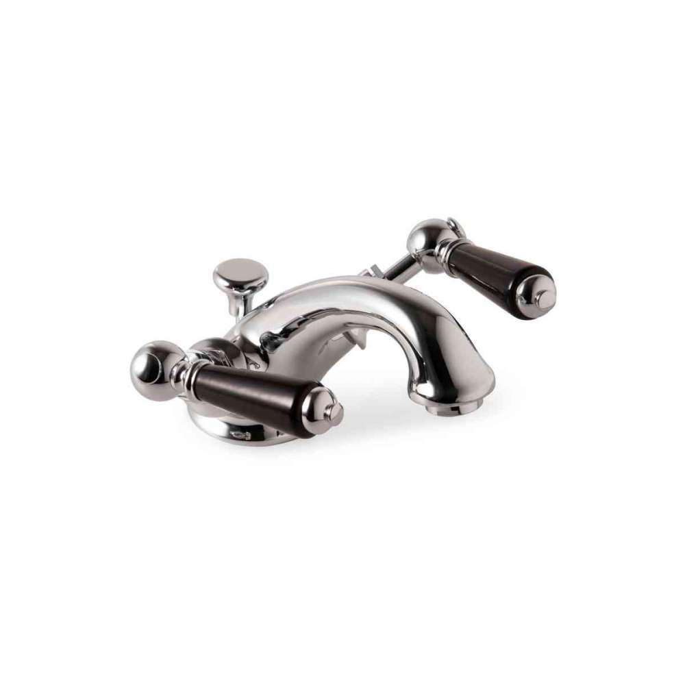 Prosty i wyrafinowany design eleganckiego zestawu 1-otworowej umywalki z korkiem automatycznym i uchwytami z czarnej porcelany. Będąc w mosiądzu, jest dostępny w następujących wykończeniach: antyczna miedź, brąz, chrom, polerowany nikiel, czarny nikiel, satynowy nikiel, jasne złoto i różowe złoto.
