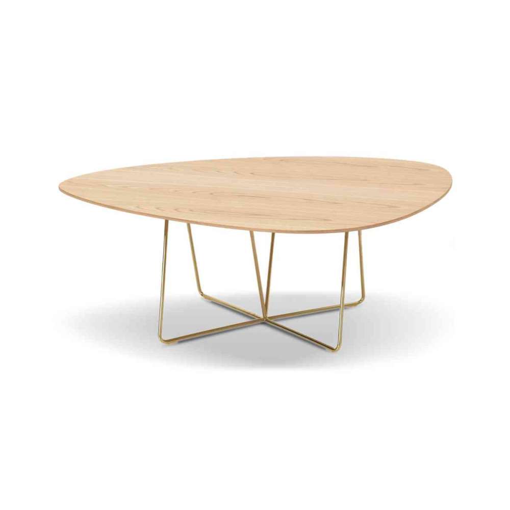 Japoński minimalizm, fachowość włoskiego rękodzieła. Lekka, wielofunkcyjna metalowa konstrukcja z delikatnie uformowanymi, asymetrycznymi, teksturowanymi drewnianymi blatami do kawy.