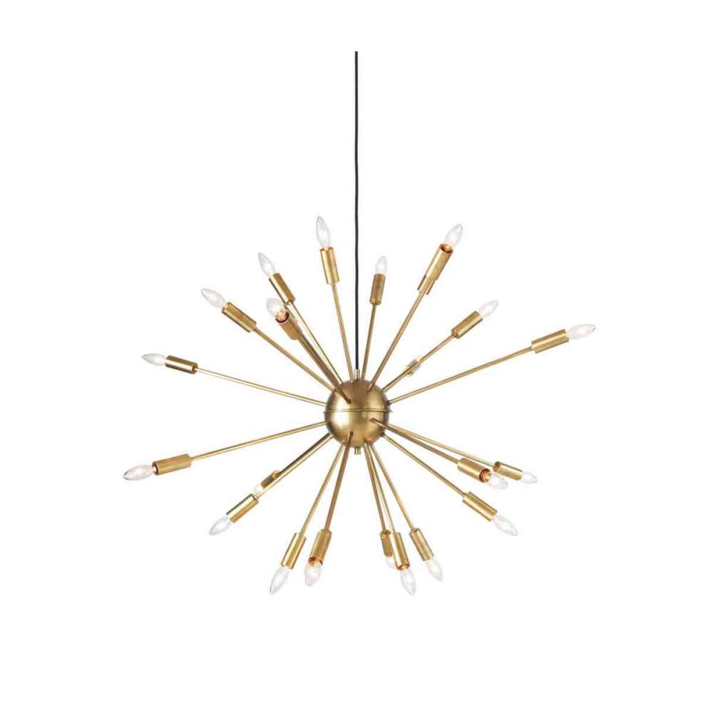 1957 roku Związek Radziecki wystrzelił na orbitę Ziemi pierwszy na świecie obiekt stworzony przez człowieka. Satelita był wielkości piłki plażowej, miał długie anteny przypominające wąsy wystające z jednej strony, a każda z jego 1440 eliptycznych orbit wokół Ziemi trwała około 98 minut. Jego uruchomienie zapoczątkowało erę kosmiczną, doprowadziło bezpośrednio do powstania Narodowej Agencji Aeronautyki i Przestrzeni Kosmicznej (NASA) i zapoczątkowało światową fascynację podróżami kosmicznymi. Zainspirowało to również estetykę projektowania opartą na tych urządzeniach z napędem rakietowym, które nadały nowe kształty meblom, oświetleniu i innym przedmiotom gospodarstwa domowego. Nasza kolekcja Satellite (2010) – choć nie zbudowana z hermetycznie zamkniętego aluminium-magnezu-tytanu, jak satelita Sowietów – oddaje ducha i etos projektowy tamtych czasów. Żyrandol satelitarny ma 24 ramiona antenowe. Na liście UL. Żarówki (brak w zestawie): kandelabry 24 x 25W.