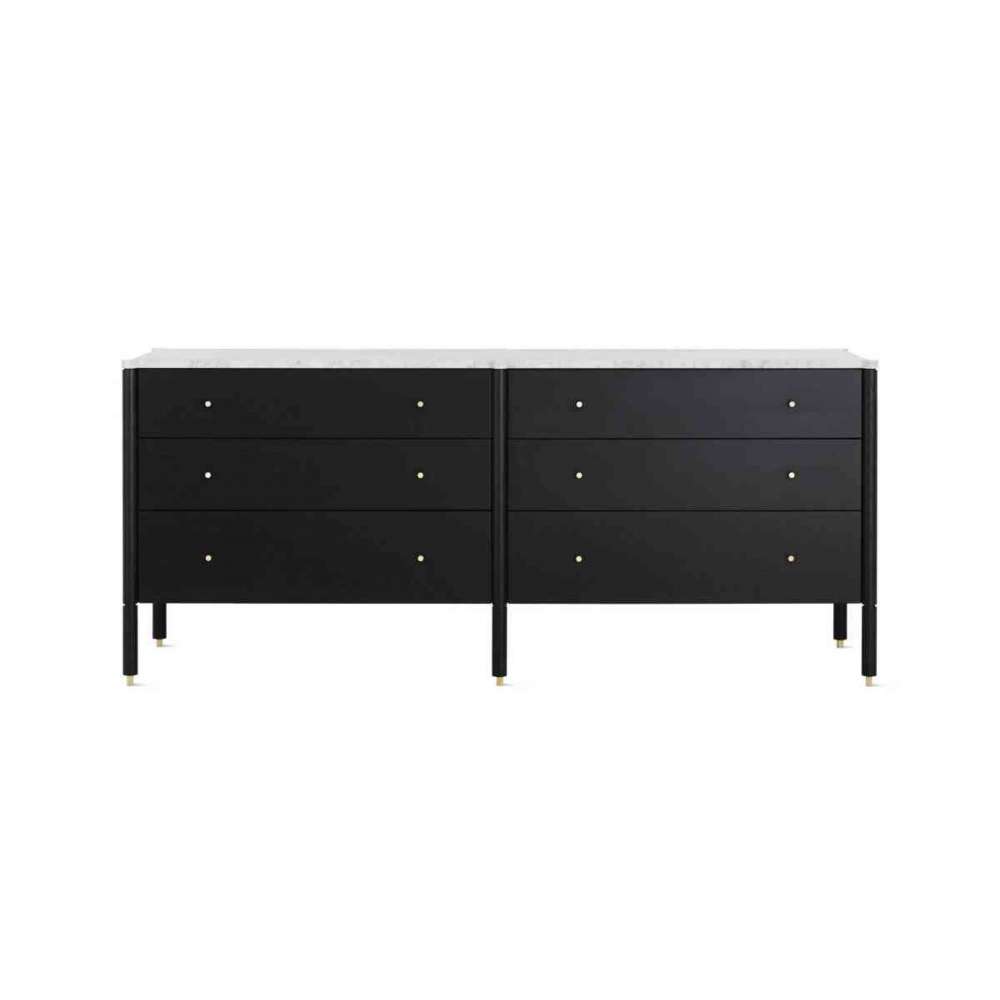Firma Egg Collective z siedzibą na Brooklynie została założona w 2011 roku przez projektantów Stephanie Beamer, Crystal Ellis i Hillary Petrie. Trio produkuje meble, oświetlenie i akcesoria, które przywołują ich osobiste historie i odwołują się do wspomnień rodzin i przyjaciół. Ostatnie wyróżnienia obejmują nagrodę dla najlepszego nowego projektanta na Międzynarodowych Targach Mebli Współczesnych 2012 oraz wpisanie na listę „30 Under 30” magazynu Forbes 2014. Zlecono im również zaprojektowanie części wypoczynkowej dla teatru Davida H. Kocha z New York City Ballet w Lincoln Center. Ich kolekcja Morrison (2012/2014) została pierwotnie stworzona dla długoletniego przyjaciela Morrisona Mullena, który potrzebował niestandardowej szafki do swojego małego mieszkania. Aby przezwyciężyć ograniczenia przestrzenne, projektanci wiedzieli, że mebel będzie musiał służyć równie dobrze jako schowek, stacja obsługi i konsola multimedialna. To, co stworzyli, było wielofunkcyjnym, nowoczesnym podejściem do tradycyjnego kredensu, z odpornym na plamy kamiennym blatem, miękko zamykającymi się okuciami, toczonymi nogami, eleganckimi liniami i delikatnie ząbkowanym profilem. Od tego czasu oryginalny projekt rozrósł się do kolekcji elastycznych rozwiązań do przechowywania, które sprawdzą się równie dobrze w domu w przedpokoju, salonie, jadalni i sypialni. Ta kolekcja musi być dostarczana z naszą usługą dostawy White Glove. Wykonane w USA.