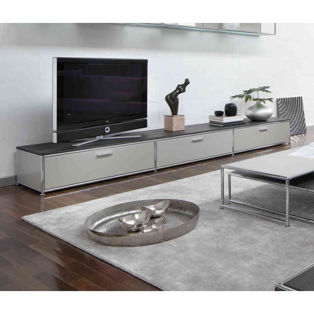 Niska szafka z 2 szufladami i opuszczanymi drzwiami, korpus lakierowany, z blatem z forniru drewnianego, w tym. gniazdo kablowe