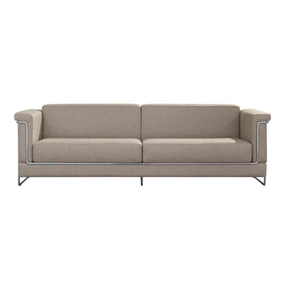 Sofa 2-osobowa z oparciem od góry do dołu i tapicerką siedziska z podłokietnikami, chromowana metalowa rama, pokryta tkaniną Omega