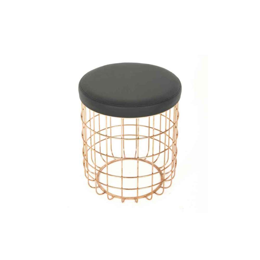Wymiary: wys. 450 x śr. 450 mm. Stalowa rama malowana proszkowo na czarno, blat tapicerowany.