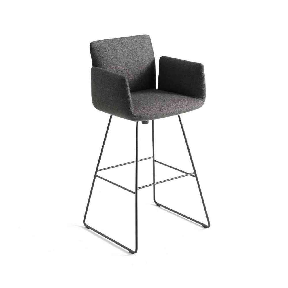 Dla wszystkich, którzy stawiają sobie wysokie cele, Jalis jest dostępny nie tylko jako stołek barowy, ale teraz także jako krzesło barowe, z wygodnie tapicerowaną skorupą, podłokietnikami i mechanizmem obrotowym 360° – rodzaj leżaka, na którym można usiąść elegancko na wysokości lady. Krzesło barowe Jalis jest dostępne w dwóch wysokościach, druciana rama jest dostępna w kolorze czarnym lub chromowanym, a wieczory są teraz dostępne tylko w długim formacie.