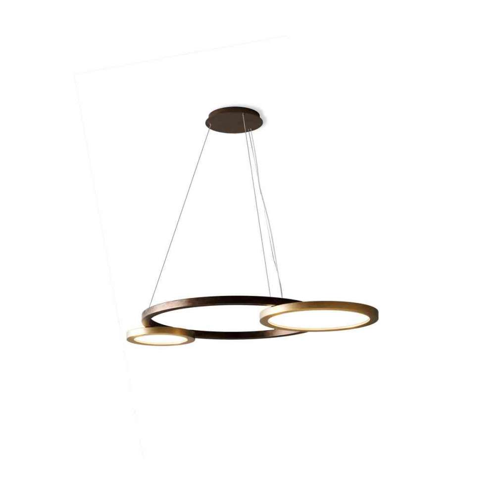 Lampa wisząca lub żyrandol inspirowany zaćmieniem słońca, bawi się światłem, cieniami i nakładającymi się elementami. Składa się z trzech wielowymiarowych pierścieni, wykonanych z drewna o wykończeniu w kolorze jasnego i ciemnego brązu, przy użyciu nowych technik malowania proszkami metali – efekt szczotkowanego brązu na metalu. Główne światło, które można przyciemniać, jest teraz umieszczone w bocznych pierścieniach i jest rozpraszane przez specjalne tworzywo sztuczne z żyłkami, które przypomina marmur.