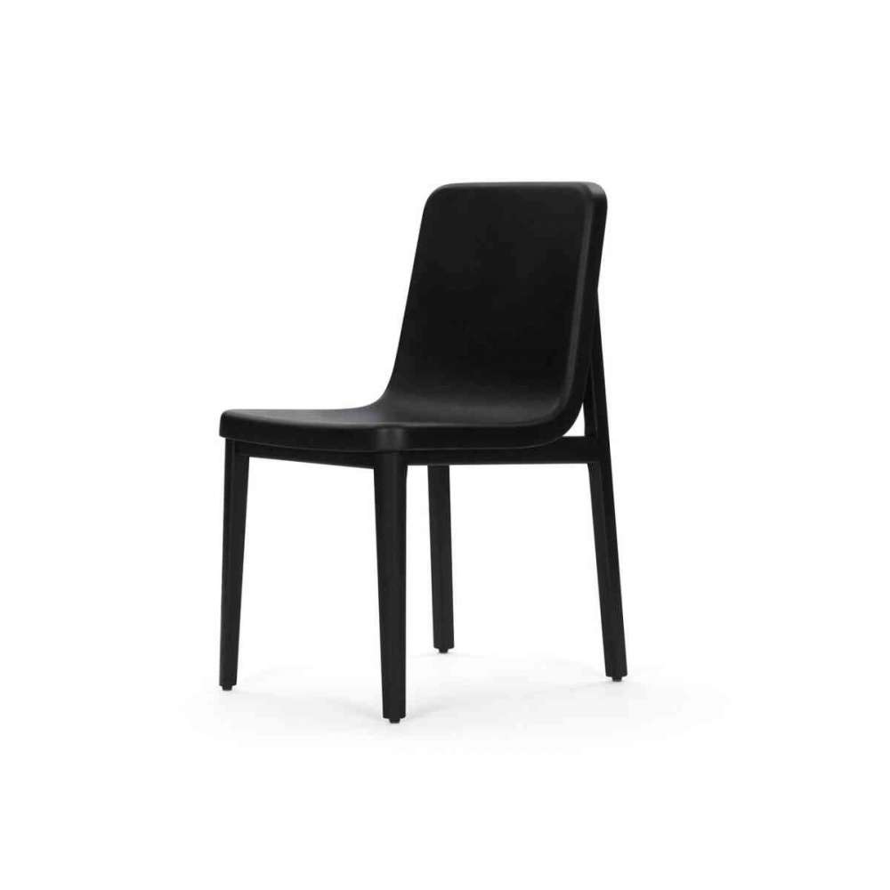 Podstawa z litego drewna, lakierowana bezbarwnie lub bejcowana na czarno, lub z rurek stalowych malowanych proszkowo. Siedzisko z monochromatycznej lub dwukolorowej sztywnej pianki poliuretanowej z opcjonalną wyjmowaną poduszką poliuretanową pokrytą tkaniną lub skórą. Lub siedzisko tapicerowane poliuretanem pokryte tkaniną lub skórą.