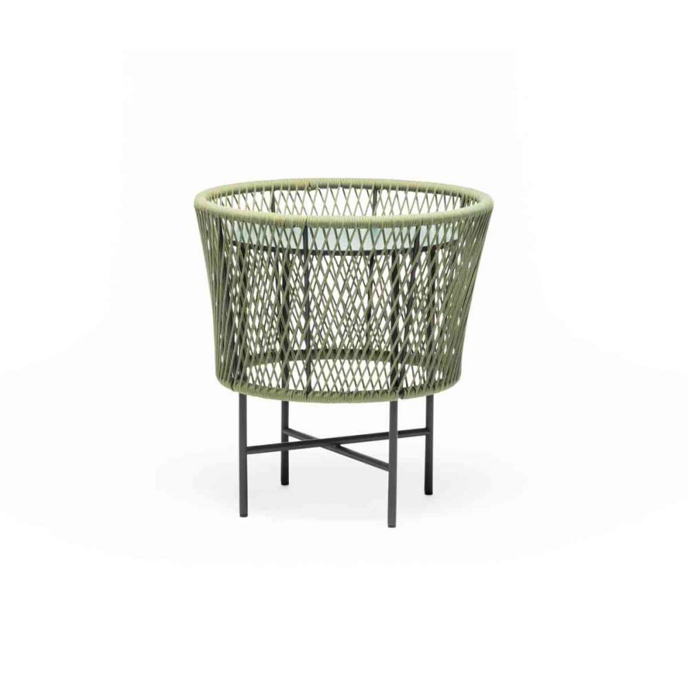 Kolekcja stolików kawowych Tamburo, zaprojektowana przez Antonio de Marco, charakteryzuje się połączeniem różnych materiałów, które sprawiają, że jest to przedmiot odpowiedni do wyposażenia przestrzeni zewnętrznych lub wewnętrznych. Konstrukcja wykonana jest ze stali malowanej proszkowo na kolor antracyt i doskonale komponuje się z blatami HPL dostępnymi w różnych kolorach. Splot jest i wykonany z liny morskiej odpornej na warunki atmosferyczne i promienie UV. Połączenie różnych kolorów nici pozwoliło na stworzenie melanżowej liny produkowanej wyłącznie dla Chairs & More.