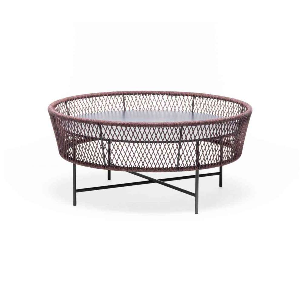 Kolekcja stolików kawowych Tamburo, zaprojektowana przez Antonio de Marco, charakteryzuje się połączeniem różnych materiałów, które sprawiają, że jest to przedmiot odpowiedni do wyposażenia przestrzeni zewnętrznych lub wewnętrznych. Konstrukcja wykonana jest ze stali malowanej proszkowo na kolor antracyt i doskonale komponuje się z blatami HPL dostępnymi w różnych kolorach. Splot jest i wykonany z liny morskiej odpornej na warunki atmosferyczne i promienie UV. Połączenie różnych kolorów nici pozwoliło na stworzenie melanżowej liny produkowanej wyłącznie dla Chairs & More.