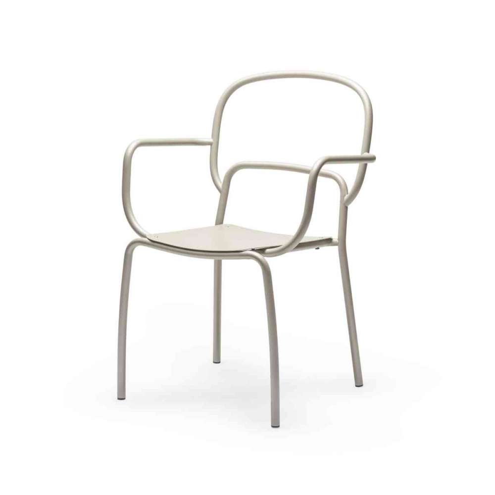 Stalowa rama malowana proszkowo do użytku na zewnątrz, kolor antracytowy lub piaskowy, metalowe siedzisko.