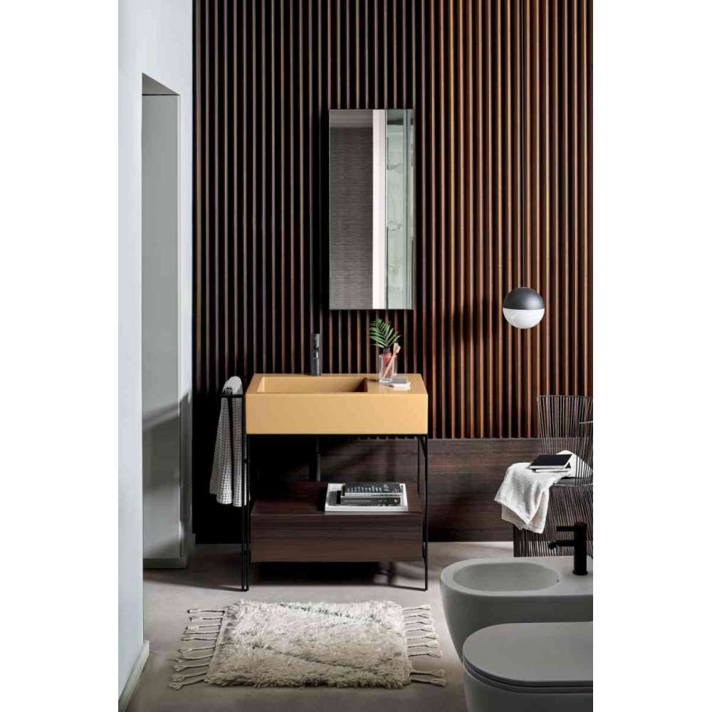 Innowacyjna umywalka ceramiczna z dużą umywalką i wygodnym blatem, w której można zintegrować element „makijażowy” z lustrem i kosmetyczką. Bardzo elegancki, funkcjonalny i wszechstronny produkt... jak prawdziwy Narciso. Umywalka jest dostępna w różnych wykończeniach ceramicznych. Element „makijażowy” może być lakierowany lub wykończony drewnem. Stelaż wykonany z malowanej stali i dostępny w różnych kolorach, można wzbogacić o pełną gamę akcesoriów: boczny wieszak na ręczniki, torbę na pranie z prawdziwej skóry i dwie szuflady.