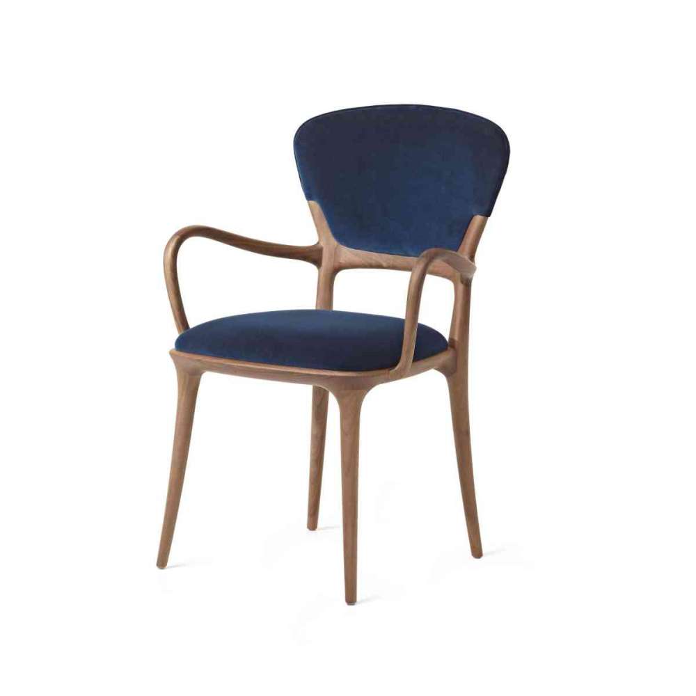 Krzesło wykonane z litego orzecha amerykańskiego lub jesionu. Siedzisko i oparcie ze sklejki tapicerowanej.