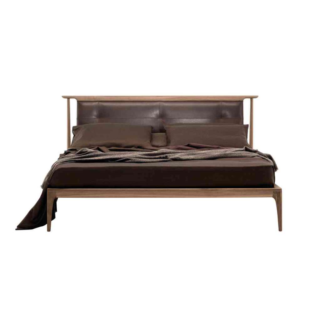 Łóżko wykonane z litego orzecha amerykańskiego, podstawa łóżka ze sklejki fornirowanej, wezgłowie tapicerowane.
