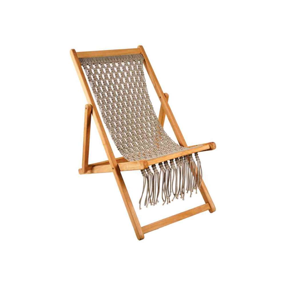 Krzesła relaksacyjne z drewna tekowego z plecionym węzłem makrama z liny HDPE.