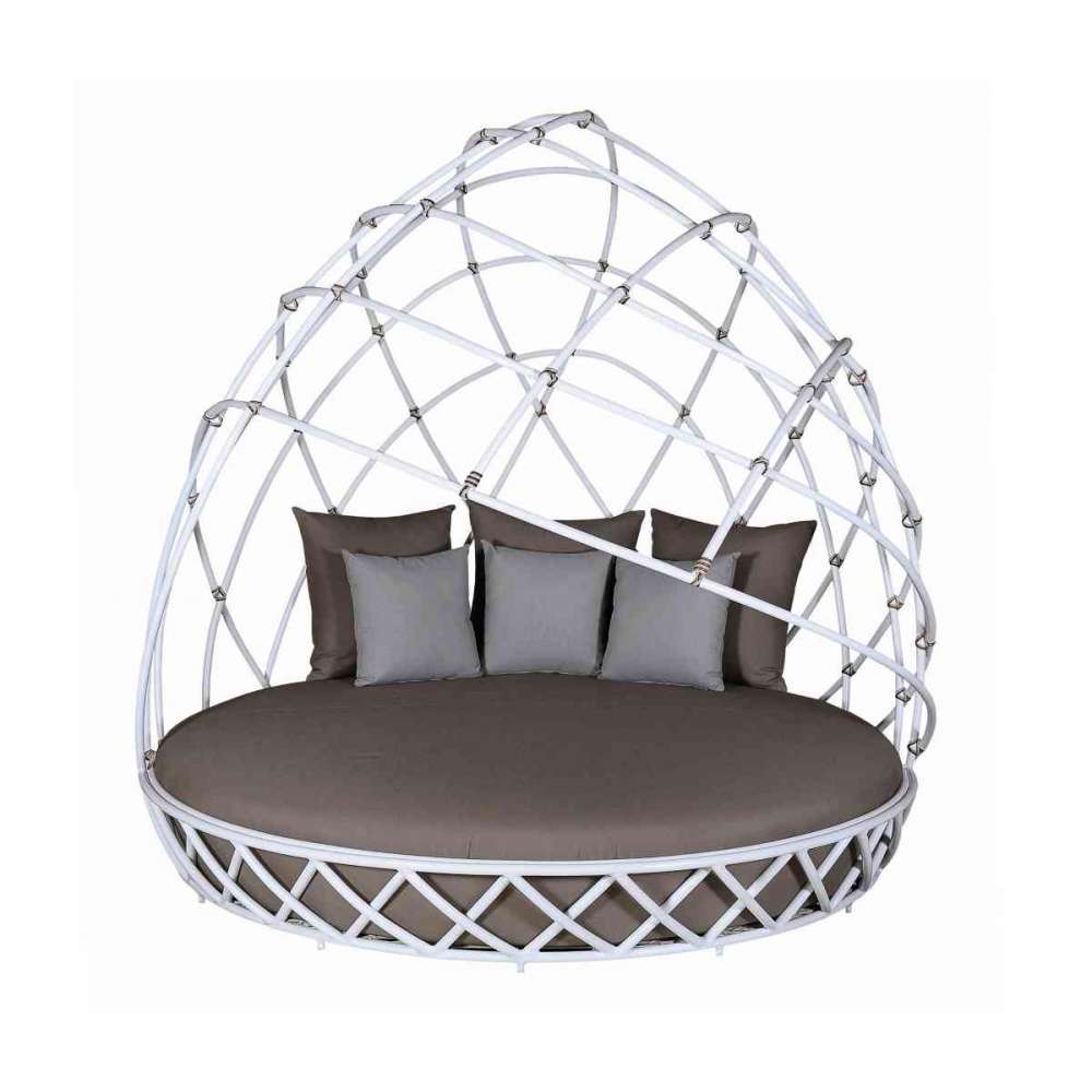 Leżak z ramą aluminiową malowaną proszkowo. Poduszki na wiszące krzesła i leżanki z nieodkształcającej się pianki z wyjmowaną, wodoodporną i plamoodporną wyściółką z olefiny.